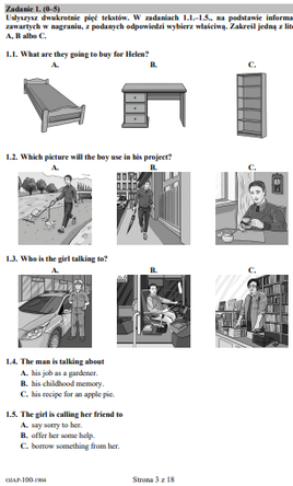 W tym artykule znajdziecie arkusz i odpowiedzi do egzaminu ósmoklasisty 2019 z języka. Próbny egzamin ósmoklasisty z angielskiego, 19 marca 2021. Więcej arkuszy znajdziesz na stronie: Arkusz egzaminacyjny karta odpowiedzi mp3 mp3 (nagrania z wydłużonymi przerwami). W okresie przejściowym (do 2021 roku) będzie obowiązywał poziom a2/a2+, a w kolejnych latach a2+ (w zakresie uzupełnianie luk.
